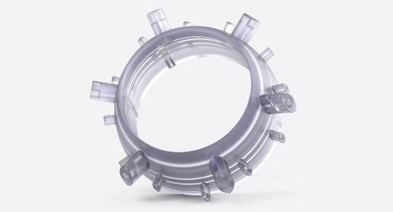 Better known as acrylic or plexiglass, polymethyl methacrylate (PMMA) is a lower-cost yet harder alternative to PC. It's not as tough, and is, in fact, a bit brittle, but exhibits better optical clarity and scratch resistance than PC. Acrylic is also roughly half the weight of glass and much stronger besides. Available in a near rainbow of colours (for injection moulding) and with a continuous service temperature of 65° C, it’s common to see PMMA on outdoor signage, retail displays, and decorative panels. Protolabs doesn’t make signage, but does routinely machine and mould this UV-resistant material for customers in the optical and scientific industries.