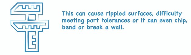 Next, avoid tall thin walls. Walls on part designs are tricky. Even though the cutting tools used in CNC machines are made from hard, rigid materials, they still deflect or bend slightly during machining, as does the material that they are cutting. This can cause rippled surfaces, difficulty meeting part tolerances or it can even chip, bend or break a wall.