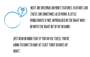 Next are internal bayonet features. Features like these can sometimes also prove a little problematic if not approached in the right way, or with the right bit of kit in hand.