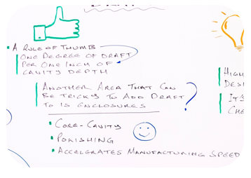 The most important of these is that when designing a part, you should apply as much draft angle as possible. A rough rule of thumb is one degree of draft per one inch of cavity depth, but this can shift about according to all those factors I just mentioned.