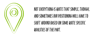 Not everything is quite that simple, though, and sometimes our positioning will have to shift around based on some quite specific qualities of the part.