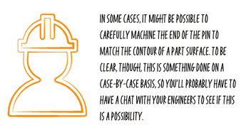 In some cases, it might be possible to carefully machine the end of the pin to match the contour of a part surface. To be clear, though, this is something done on a case-by-case basis, so you’ll probably have to have a chat with your engineers to see if this is a possibility.
