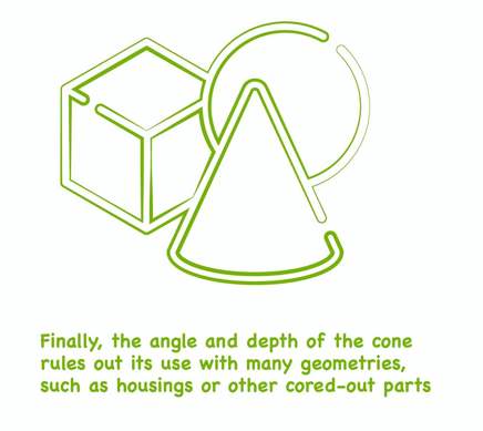 Of course, being large is also a bit of a downside, as that’s the cause for its bigger vestige, and the fact that it has to be located on the parting line can mean it isn’t the right choice for every part.