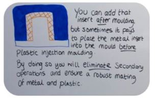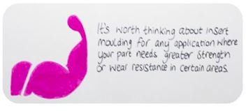 You can of course add that insert after moulding, but sometimes it pays to place the metal insert into the mould before plastic injection. By doing so you will eliminate secondary operations and ensure a robust mating of metal and plastic.