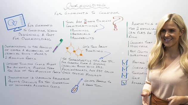 En este video observamos los materiales y su compatibilidad para el proceso de sobremoldeo. Luego también veremos los requisitos funcionales del componente (una pieza sobremoldeada a menudo es para agarrar, por ejemplo, en una herramienta manual o equipo quirúrgico); y requisitos estéticos (consideraciones de color y materiales que corresponden a la marca de una empresa).