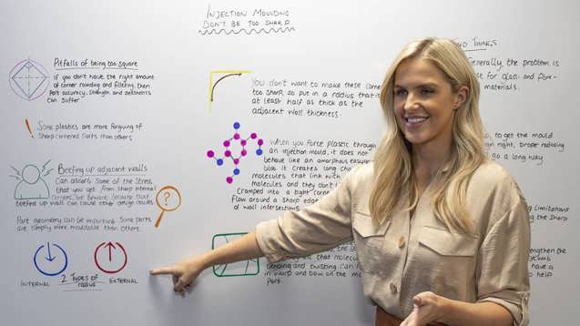 En este video veremos la geometría del componente, el espesor de la pared, cómo reducir los bordes de las piezas moldeadas por inyección. Y también veremos el proceso de moldeo por inyección en sí mismo - cómo el plástico fundido se mueve a través de la cavidad, cómo esto debería impactar en su CAD, y consideraciones sobre el material para asegurar que el componente funciona mejor.