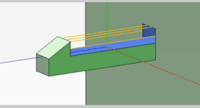 En un molde de producción de acero tradicional tal vez se pudiera mecanizar el extremo del pivote, para adaptarlo a un contorno de la superficie de la pieza que no sea perpendicular a la dirección en la que se mueve el pivote, produciendo un pivote contorneado. El proceso de Protolabs, sin embargo, no es compatible con la producción de pivotes contorneados. Si un pivote tiene que actuar sobre la superficie de una pieza que no esté en paralelo al extremo del pivote, tendrá que tener un soporte que esté en el mismo plano del extremo del pivote, en lugar de en el de la superficie de la pieza. Debido a que está en un plano diferente al de la superficie de la pieza, el soporte de extracción puede elevarse ligeramente por encima de la superficie de la pieza en uno de los bordes o empotrarse ligeramente por debajo de la superficie de la pieza en uno de los bordes. Configurar un soporte que esté un poco empotrada en la superficie de la pieza es la configuración por defecto de los pivotes en superficies contorneadas.