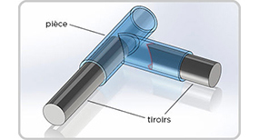 Evidemment, lorsque vous concevez une pièce vous ne précisez pas clairement comment les broches seront utilisées pour former les canaux, mais des canaux comme ceux présentés dans la Figure 1 nécessitent exactement ce type de zone de fermeture. Si vous créez sans le vouloir cette zone de fermeture qui pourrait poser problème, votre analyse de conception ProtoQuote® devrait vous le signaler. L'analyse de ProtoQuote ne reconnait pas spécifiquement les intersections de canaux mais elle recherche les bords excessivement fins et fournira une réponse, en signalant que vous avez créé une « arête fragile» dans le moule et en mettant en évidence la zone à modifier. Vous devrez corriger le problème avant de pouvoir continuer. Heureusement, pour éliminer le problème, il est possible de modifier la conception d'une telle zone de plusieurs manières.
