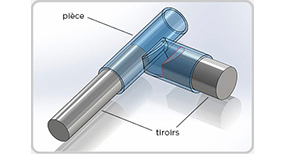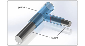 Comme le montre la Figure 3, on peut renforcer ces arêtes en réduisant la surface de contact entre les broches. Ceci se traduit par l'ajout d'une dépouille sur la broche latérale et conduit à une diminution des zones fragiles qui résisteront mieux à la pression de l'injection.