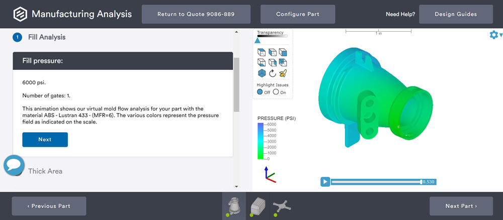 2. Quote includes real-time pricing and manufacturing analysis based on your selections