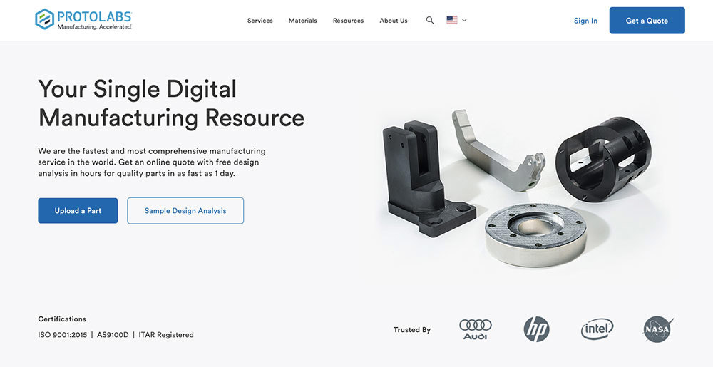 1. Just hit Get a Quote in the upper right corner of any protolabs.com page or Sign In to your account directly left of it.