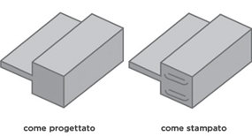 Lo spessore delle pareti è molto importante. Immagina di progettare una semplice scatola. A una prima occhiata, delle pareti spesse potrebbero sembrare un buon metodo per tenere al sicuro il contenuto, ma i materiali plastici usati per lo stampaggio ad iniezione sono... di plastica. Le pareti più spesse di quanto non sia consigliabile per le resine termoplastiche usate, saranno soggette a deformazione e depressione durante il raffreddamento. In linea generale, lo spessore ideale è compreso tra 1 e 3,5 mm e deve rimanere costante in tutti i punti del pezzo.