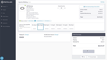 We provide two injection molding service options. One is best suited for those who need smaller part quantities often associated with prototyping and on-demand manufacturing (ODM) is a good fit for those who require larger part quantities common in low-volume production. To help you decide, our advanced price curve feature compares prototyping against ODM so you have full visibility and total cost of ownership on molded parts throughout the product life cycle.