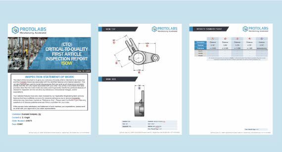 Next, our applications engineering team will review your model and email you an Inspection Statement of Work (ISOW), which lets you know if any features you circled have issues with tolerances and moldability. Once we send the ISOW, we manufacture and inspect your order at Protolabs speeds. Please reach out immediately if there are any concerns with the information in the ISOW. Contact one of our applications engineers at 877-479-3680, or send an email to [email protected].