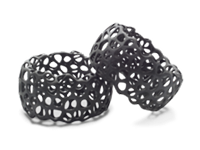 PolyJet uses a print head to spray layers of photopolymer resin that are cured, one after another, using ultraviolet light. The layers are very thin allowing quality resolution. The material is supported by gel matrix that is removed after completion of the part. Elastomeric parts are possible with PolyJet. | |
