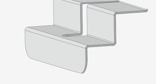 Offsets are used to create Z-shaped profiles in sheet metal parts. We offset height tolerance at +/-0.012 in. (0.304mm) from top of sheet to top of form and recommend an offset of 0.030 in. (0.762mm).