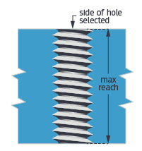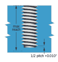 Example 5:Il s'agit d'une vue en coupe d'un trou borgne (un trou qui a un fond/ne traverse pas la pièce). Dans ce cas, le trou est inférieur à la portée totale et le filetage s'arrêtera à environ 0,25 mm du fond. Si le trou est plus profond que la portée de l'outil, les filets seront coupés aussi profondément que possible. |