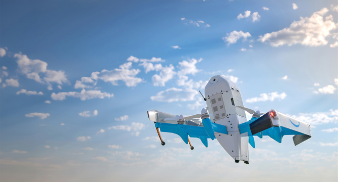 | Many cutting-edge drone developers partner with Protolabs for defense, search-and-rescue, delivery, and even transportation applications. Amazon’s Prime Air drone team tapped into Protolabs’ quick-turn metal 3D printing and machining services for end-use production parts in the company’s advanced delivery drones. |