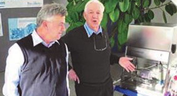 Il Prof. Dr. Hans Hoffmeister, Capo Ufficio Esecutivo di Zell GmbH, descrive il sistema mentre regge in mano un particolare non vistoso in plastica trasparente con un coperchio. “Quelle che vedete qui è il cuore dei nostri bioreattori. Esso soddisfa tutte le richieste necessarie per produrre le cellule umane nella stessa quantità come i farmaci, in un processo standardizzato e ripetibile”.