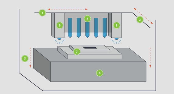 Technologia Polyjet bazuje na nakładaniu materiału za pośrednictwem dyszy. Małe krople ciekłego fotopolimeru nazywane voxelami, są natryskiwane z dużej liczby dyszy na platformę konstrukcyjną i warstwowo utwardzane, tworząc geometrię elastomerowego elementu.