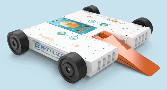 It’s that time of year again, time for the BattleBots to go at it to see who is the fiercest in the BattleBox. For the third time, Protolabs is powering DUCK!, the 250-pound, low-riding, and somewhat adorable competitor from Team Black and Blue. A crafty veteran of the arena, DUCK! uses a combination of brains and sensible defensive strategies to outlast the competition. After all, it comes down to being the last bot rolling, even if you’ve been mercilessly damaged in unpleasant ways.