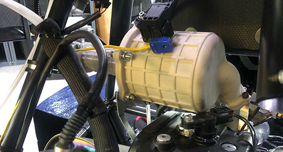 Machined: front and rear suspension rockers Printed: parts for the intake, plenum, and restrictor in the powertrain system |