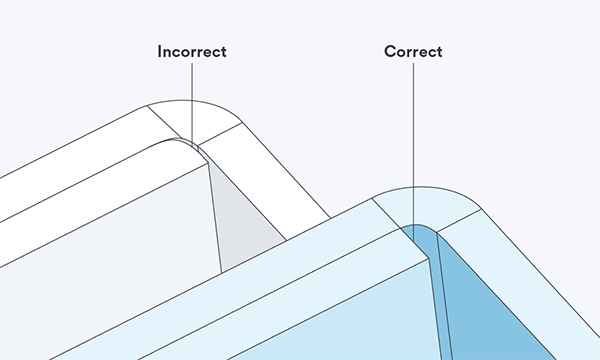 Many designers who aren’t well-versed in sheet metal will forget that formed corners will have a radius. Engineers have designed parts that mate face-to-face and when the design is turned into sheet metal and a bend radius is added—0.030 in. (0.76mm) inside bend radius is most common—the components that are mated run into an interference in the bend region. A best practice is to add inside bend radii to your parts as you design them and plan your mating components to meet and secure before the bend region.