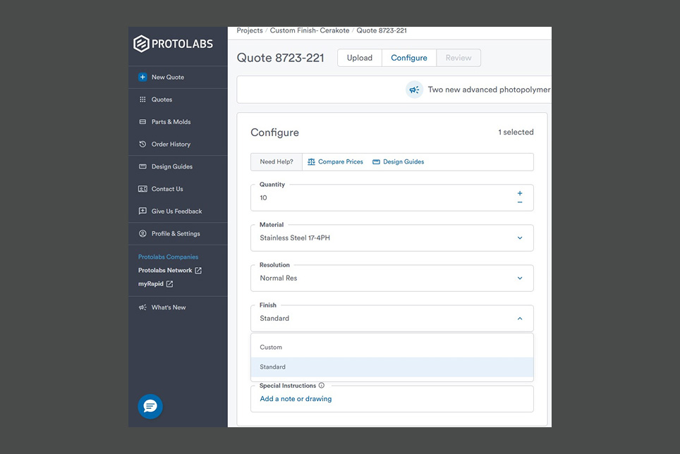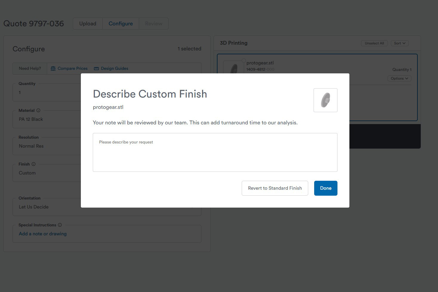 You will receive a link to the final quote including the correct custom finishing. Place your order and wait for your custom finished parts to arrive!