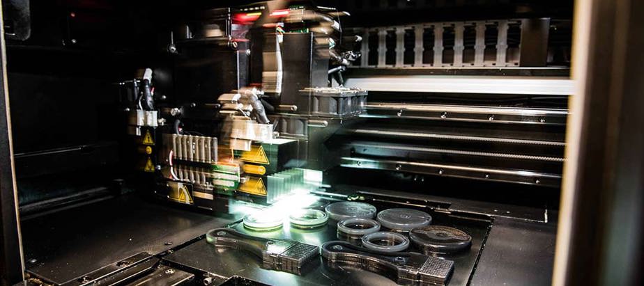 PolyJet is an industrial 3D printing process that builds multi-material prototypes with flexible features and complex parts with intricate geometries in as fast as 1 day. A range of hardnesses (durometers) are available, which work well for components with elastomeric features like gaskets, seals, and housings.