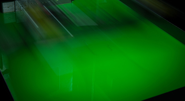 The SLA machine begins drawing the layers of the support structures, followed by the part itself, with an ultraviolet laser aimed onto the surface of a liquid thermoset resin. After a layer is imaged on the resin surface, the build platform shifts down and a recoating bar moves across the platform to apply the next layer of resin. The process is repeated layer by layer until the build is complete.