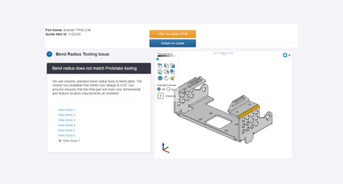 When requesting a quote through our digital quoting platform, you will receive both manufacturability analysis and pricing. This important first step in the digital manufacturing process enables you to test multiple designs simultaneously, thereby achieving design validation sooner, which saves time in the development cycle.